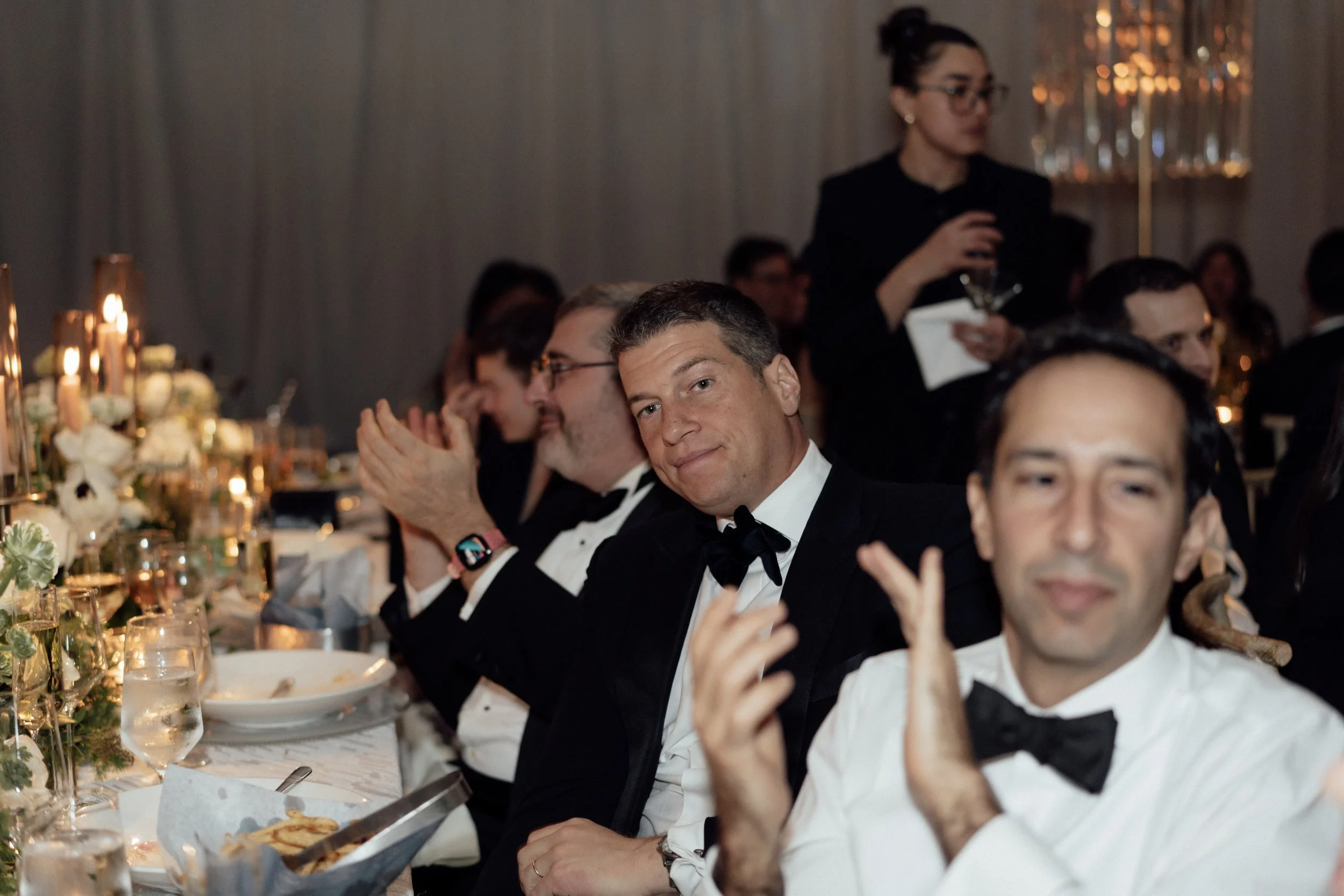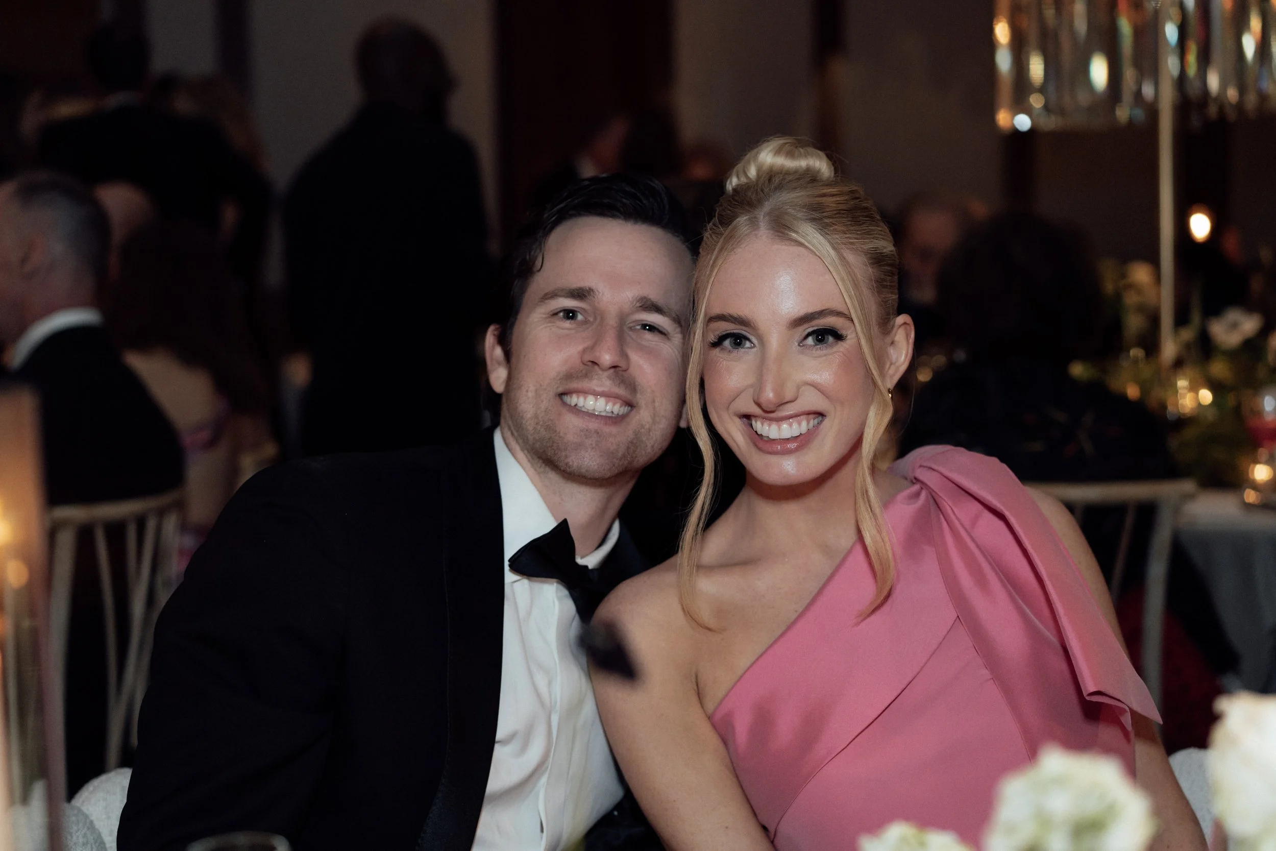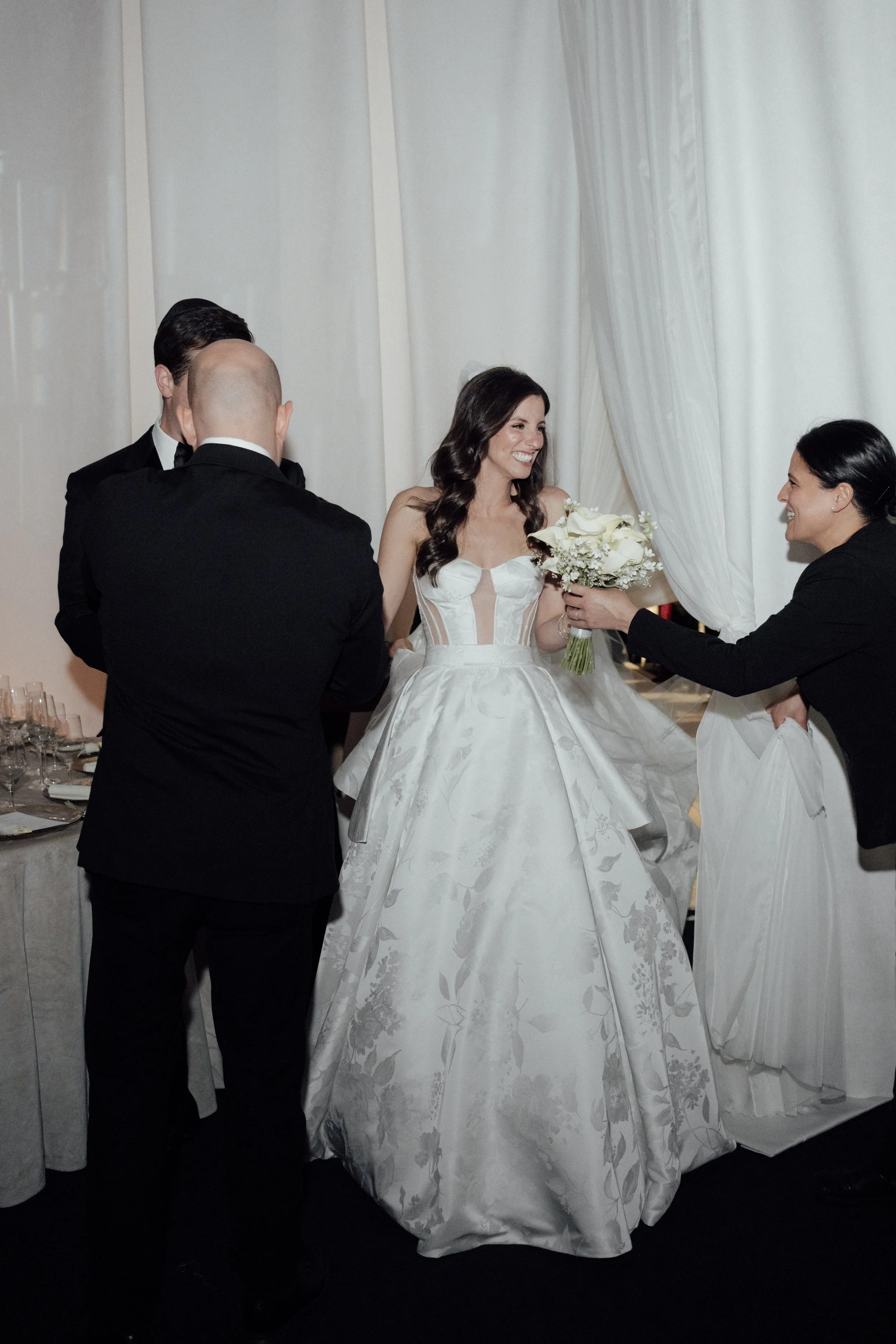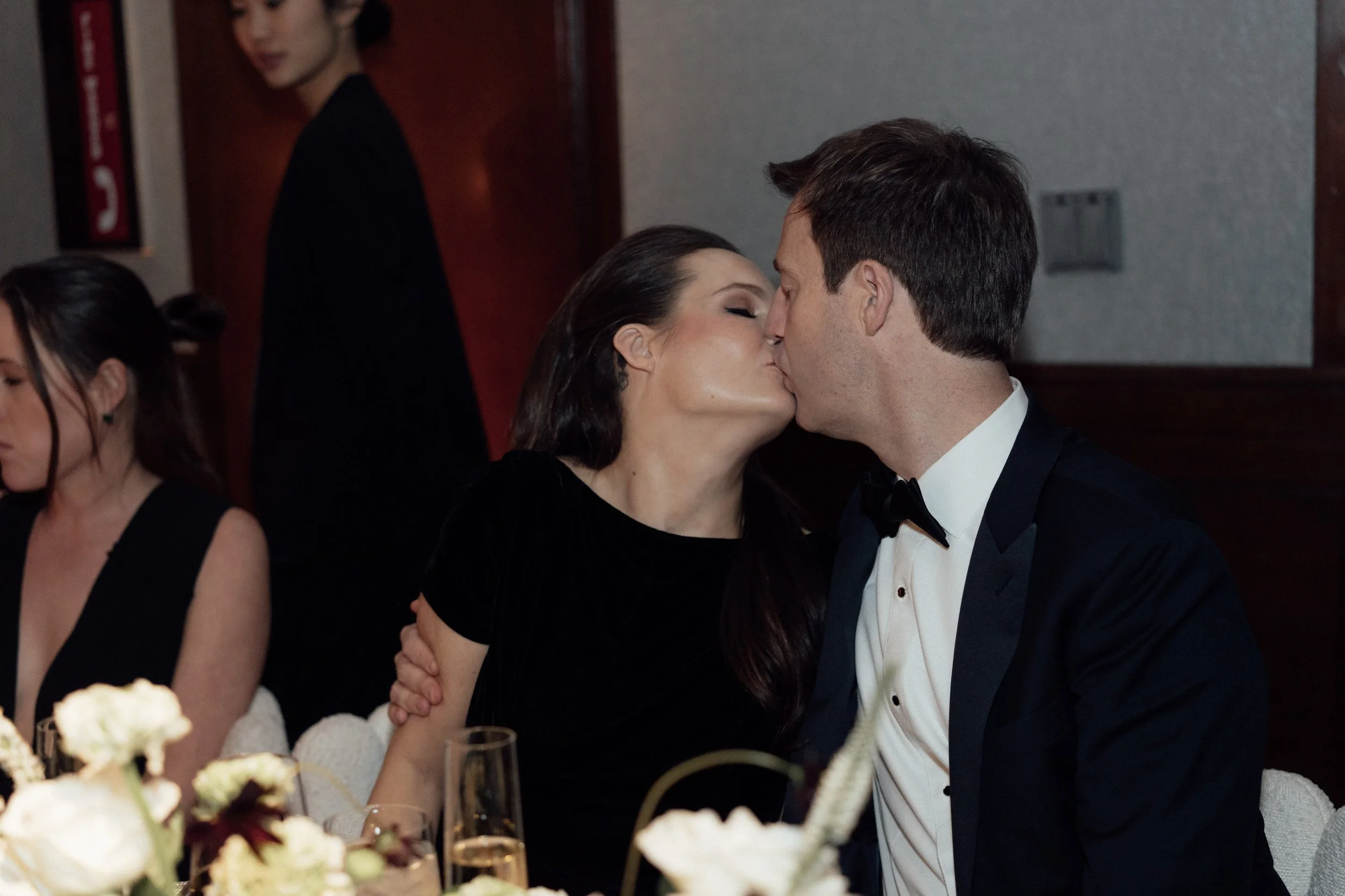 N & S began their black-tie wedding tucked inside The Bowery Hotel, where sunlight filtered through heavy drapes. As the day moved west toward the Hudson, guests gathered at Pier 60 for a modern and elegant evening with nigiri, cocktails, and the New Jersey skyline.