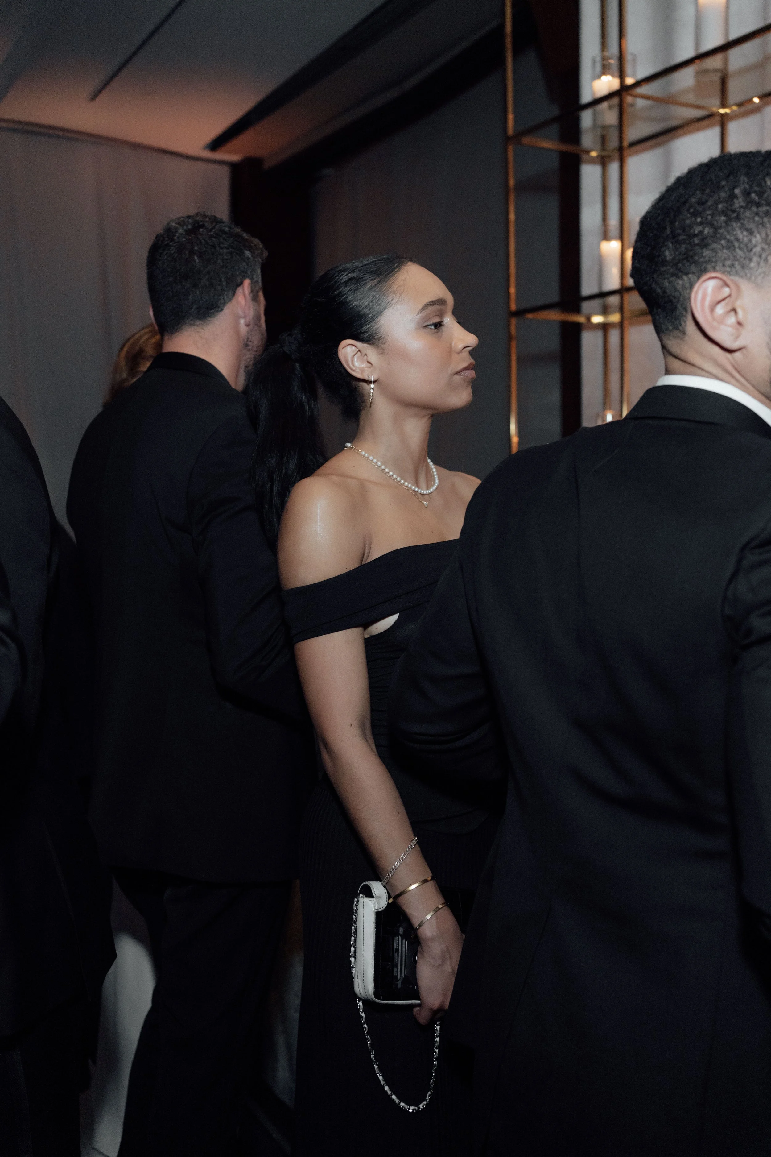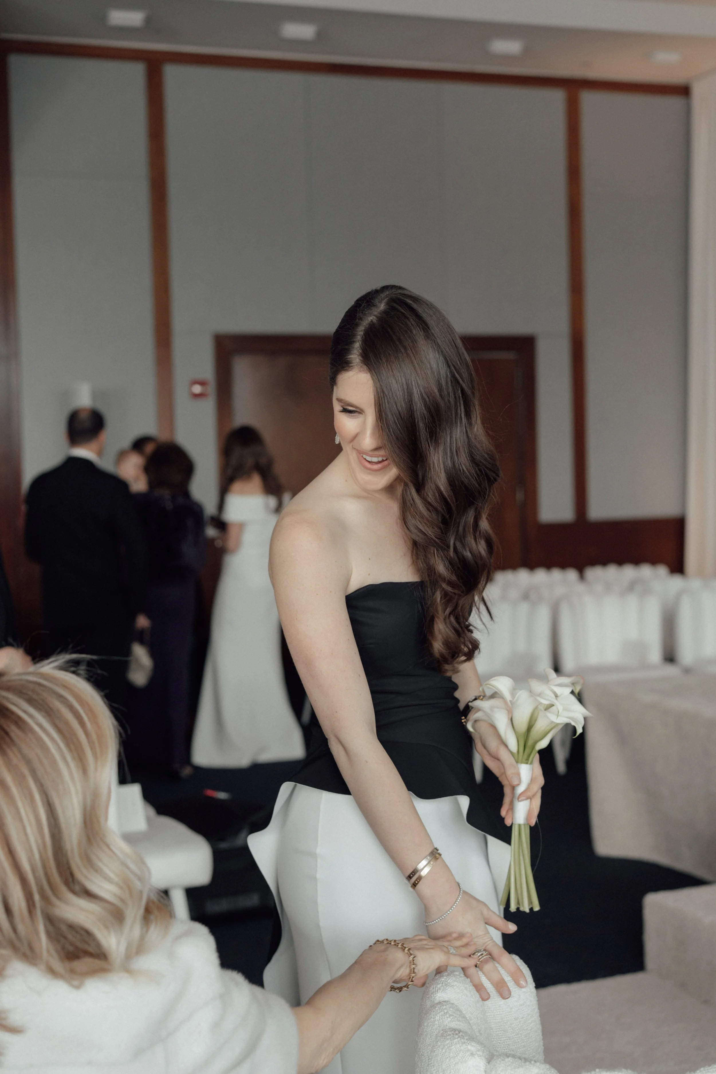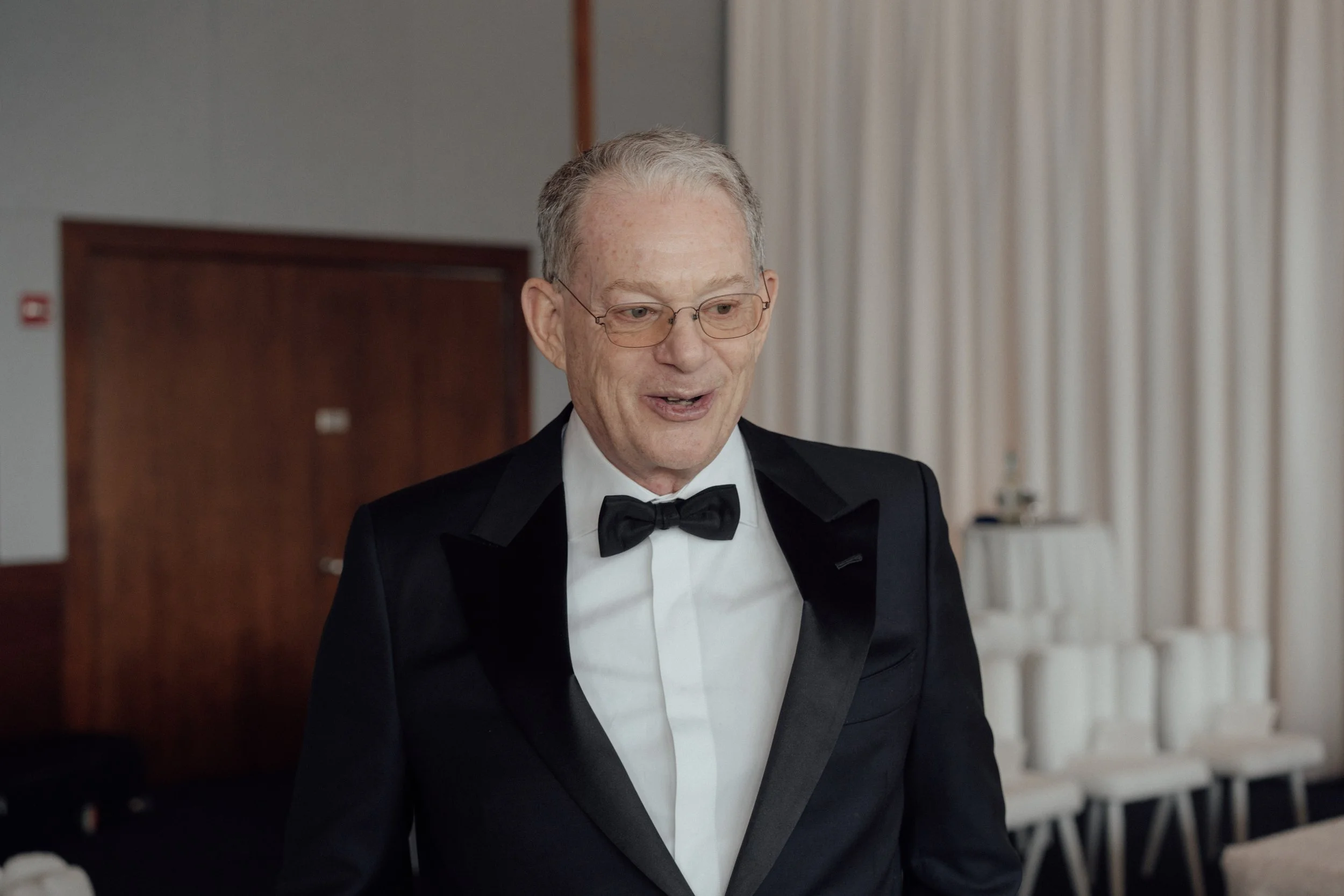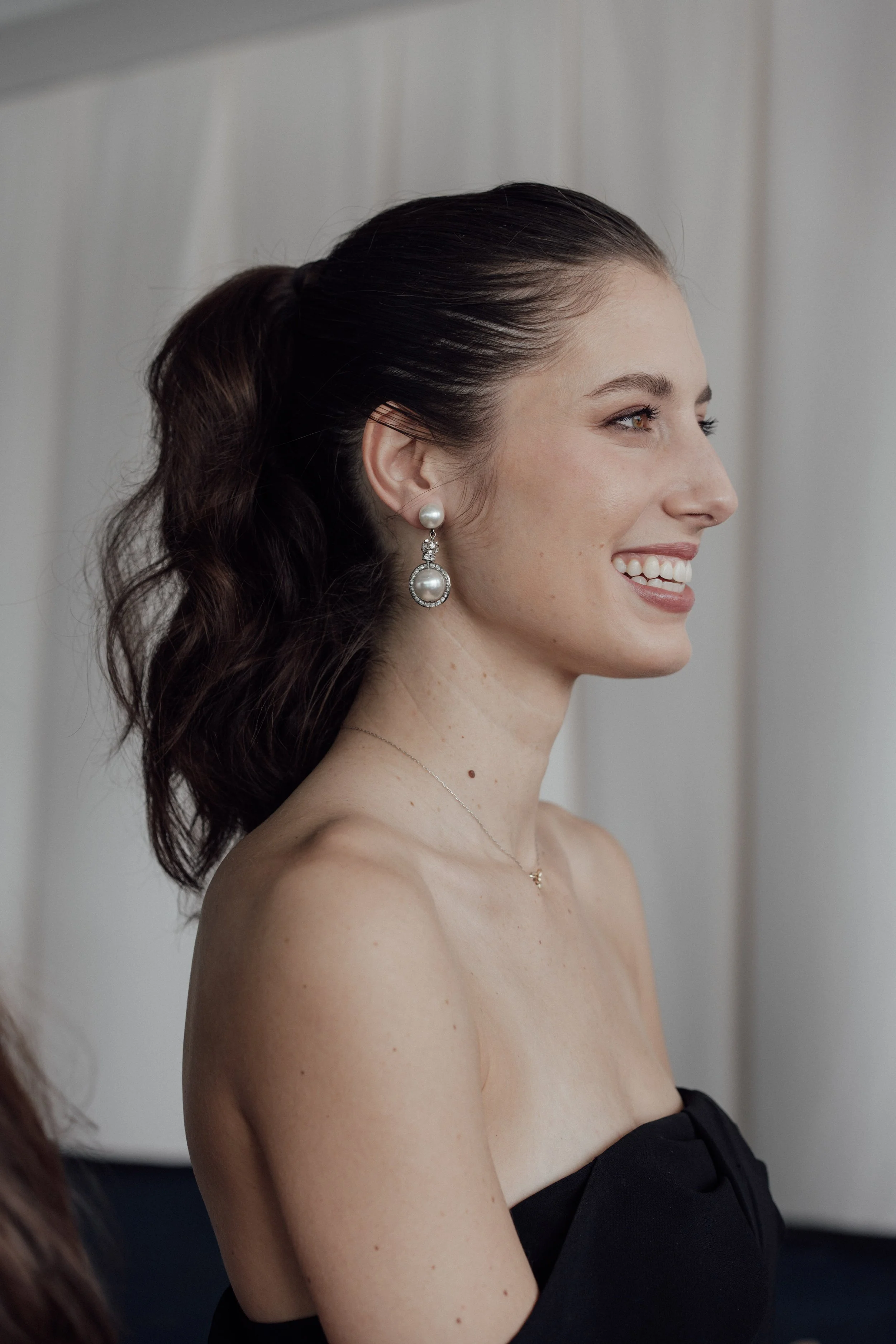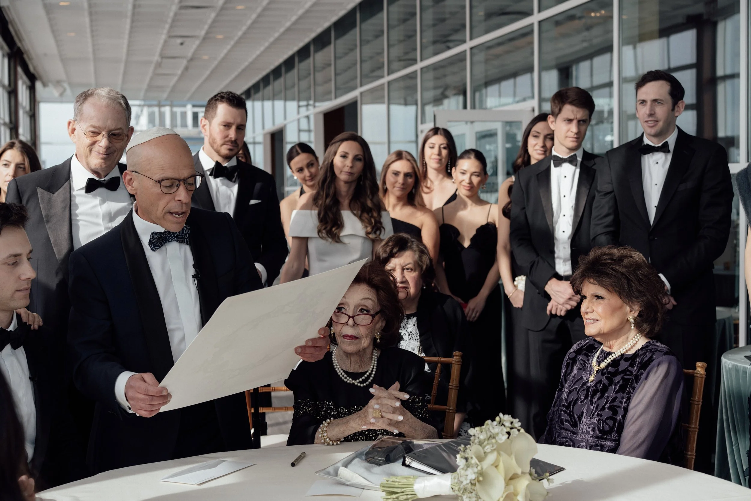 N & S began their black-tie wedding tucked inside The Bowery Hotel, where sunlight filtered through heavy drapes. As the day moved west toward the Hudson, guests gathered at Pier 60 for a modern and elegant evening with nigiri, cocktails, and the New Jersey skyline.