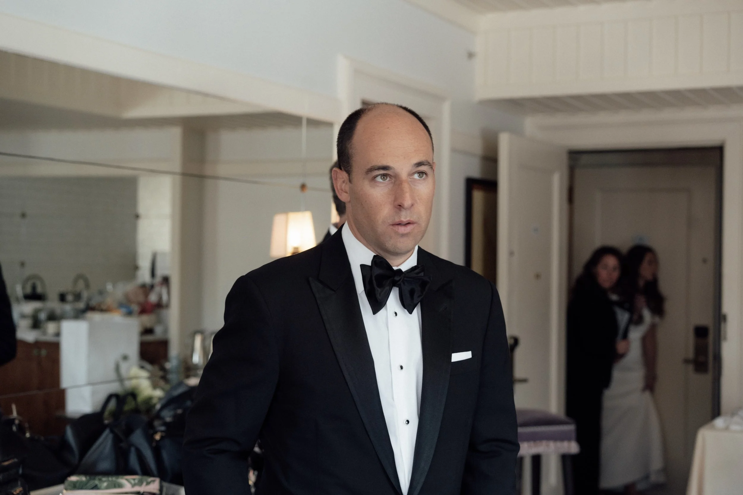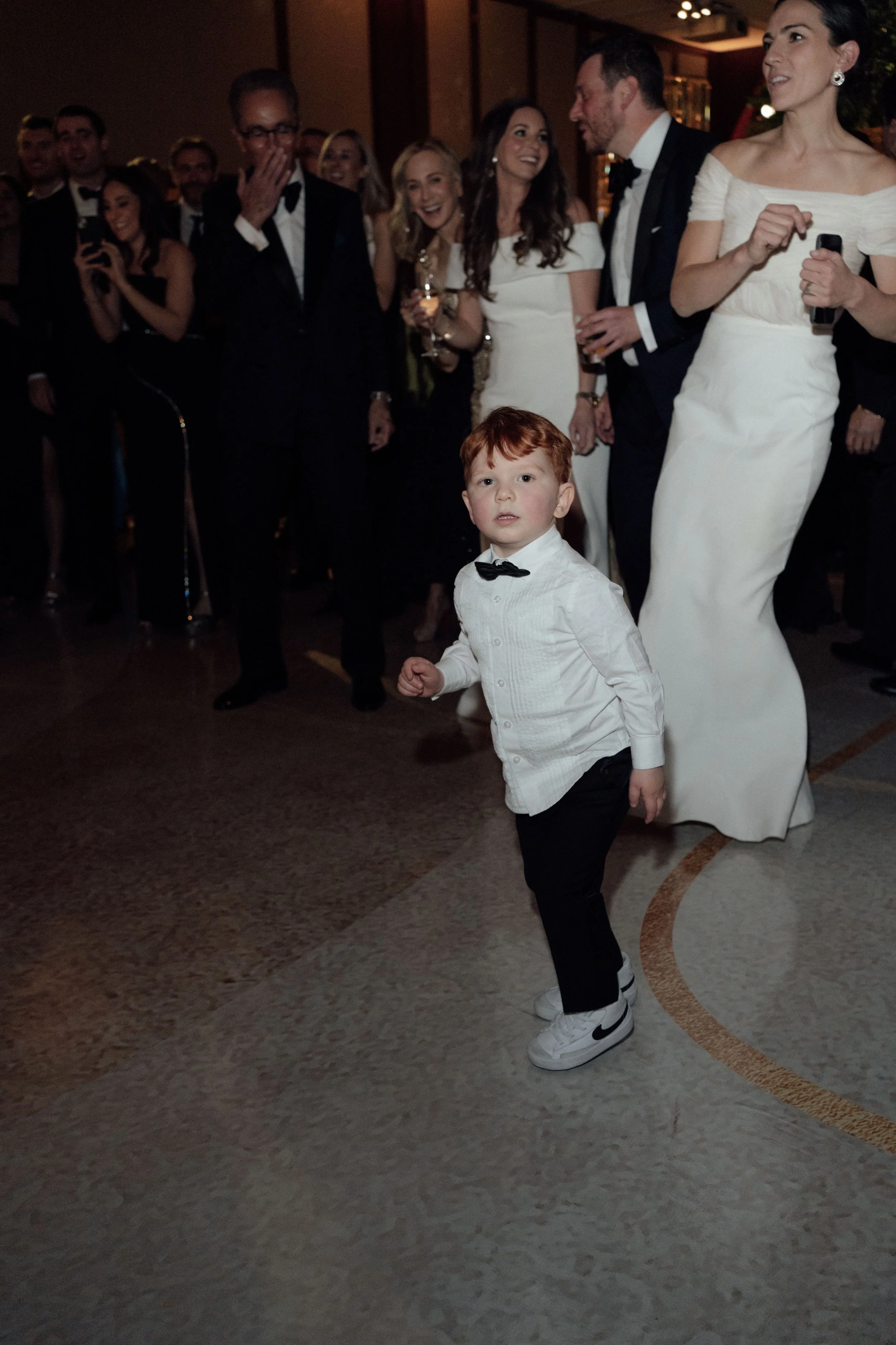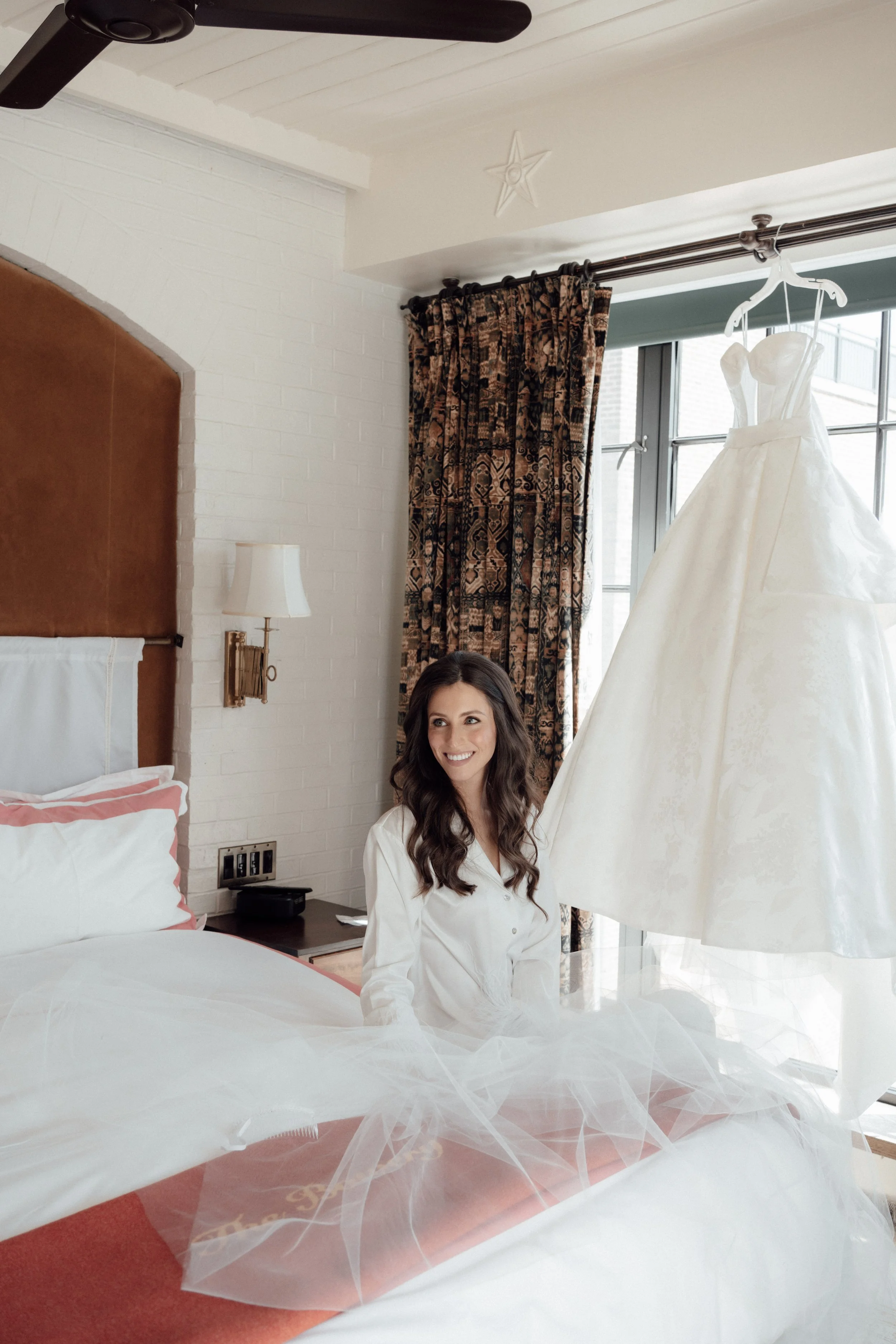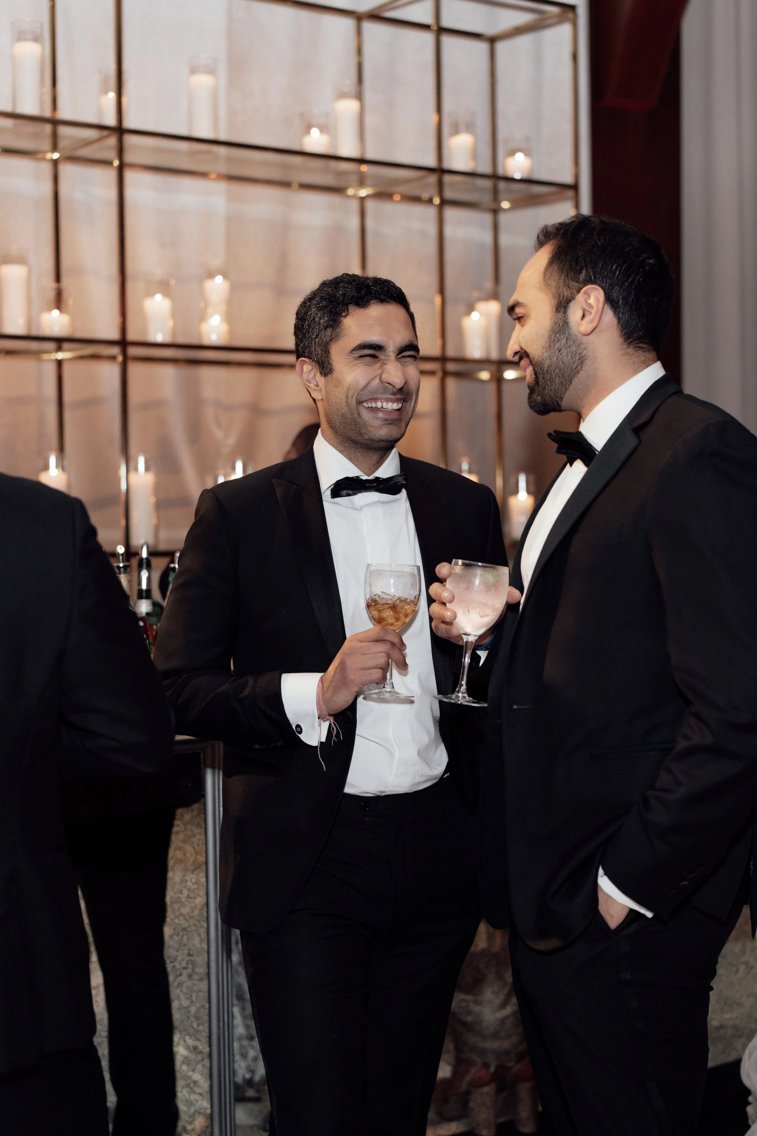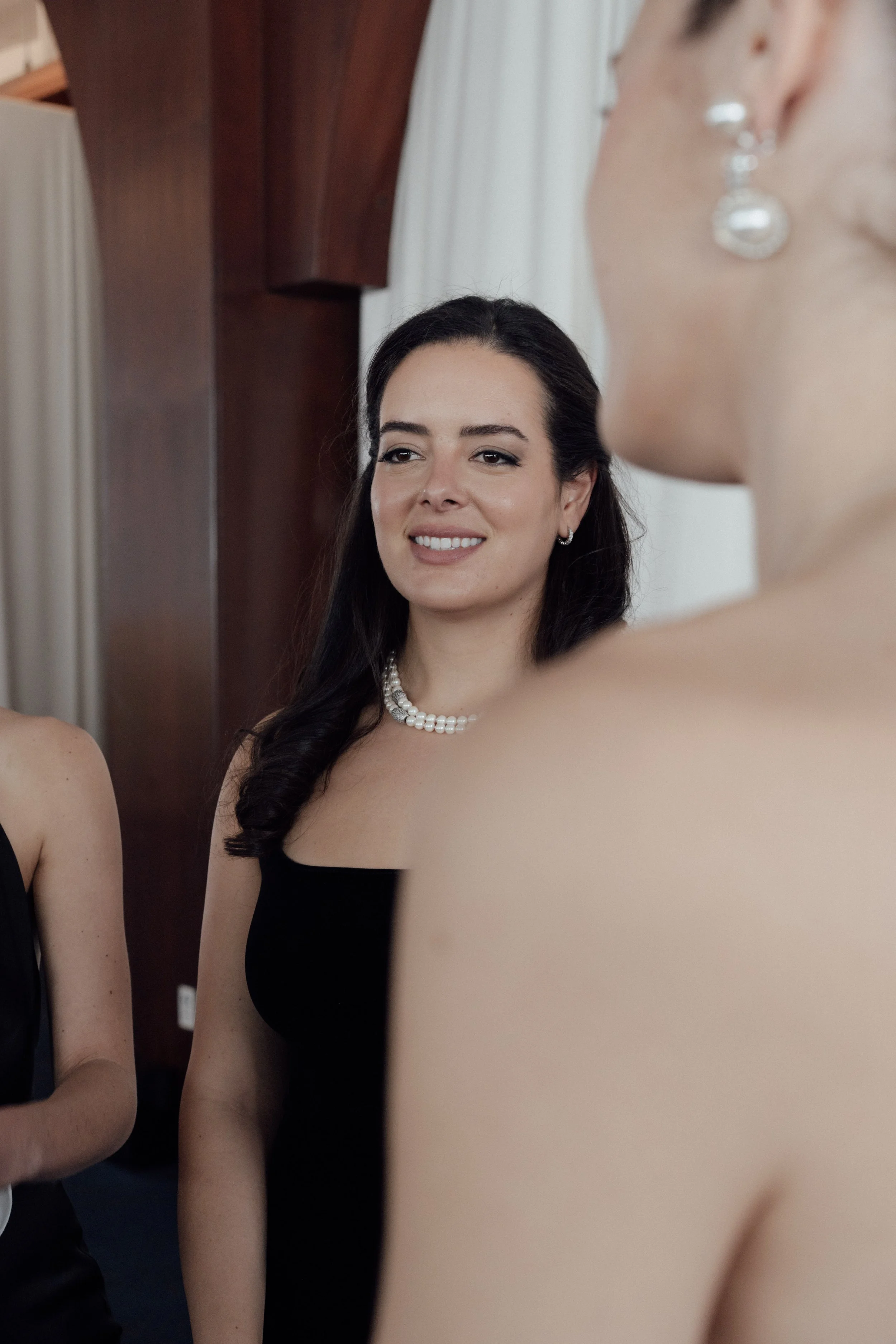 N & S began their black-tie wedding tucked inside The Bowery Hotel, where sunlight filtered through heavy drapes. As the day moved west toward the Hudson, guests gathered at Pier 60 for a modern and elegant evening with nigiri, cocktails, and the New Jersey skyline.