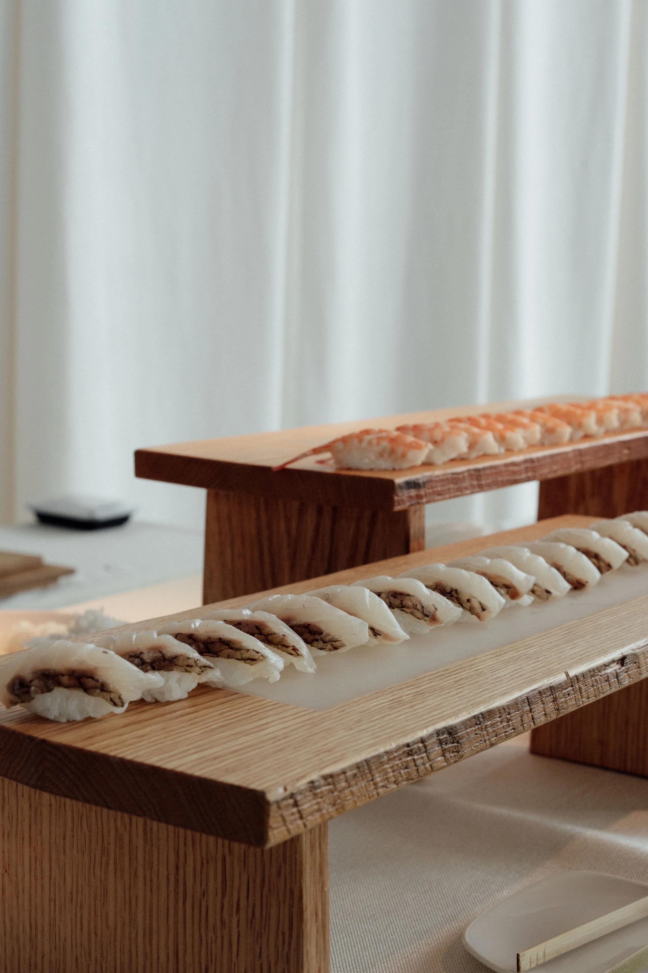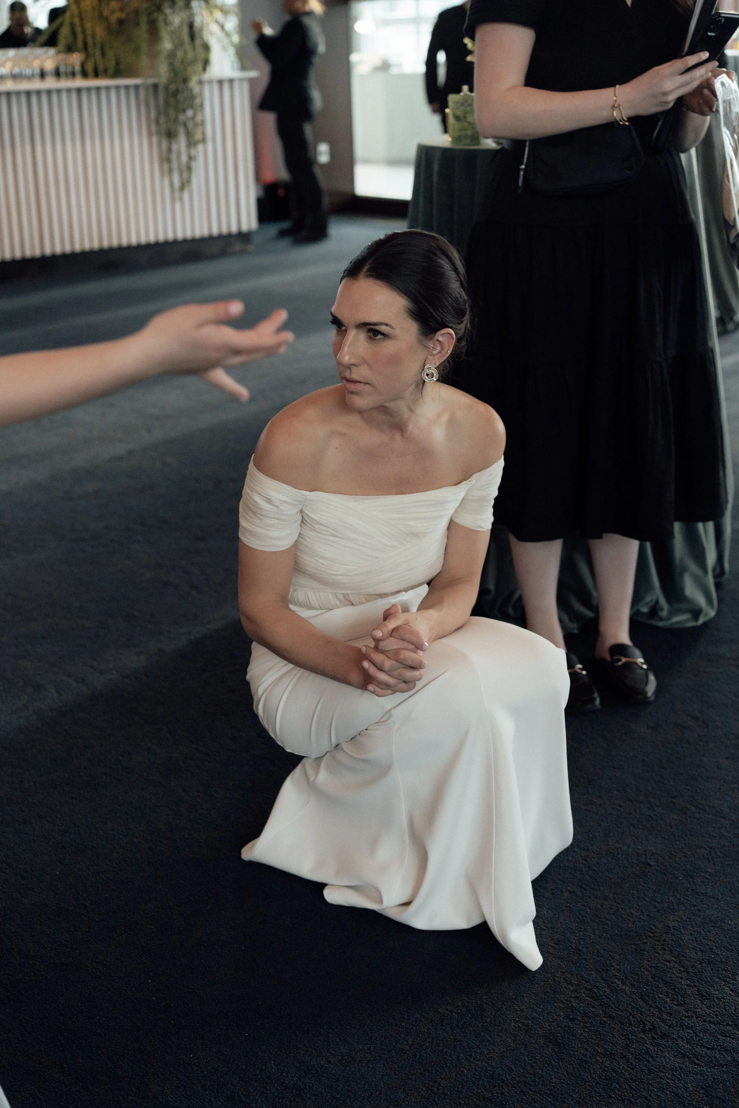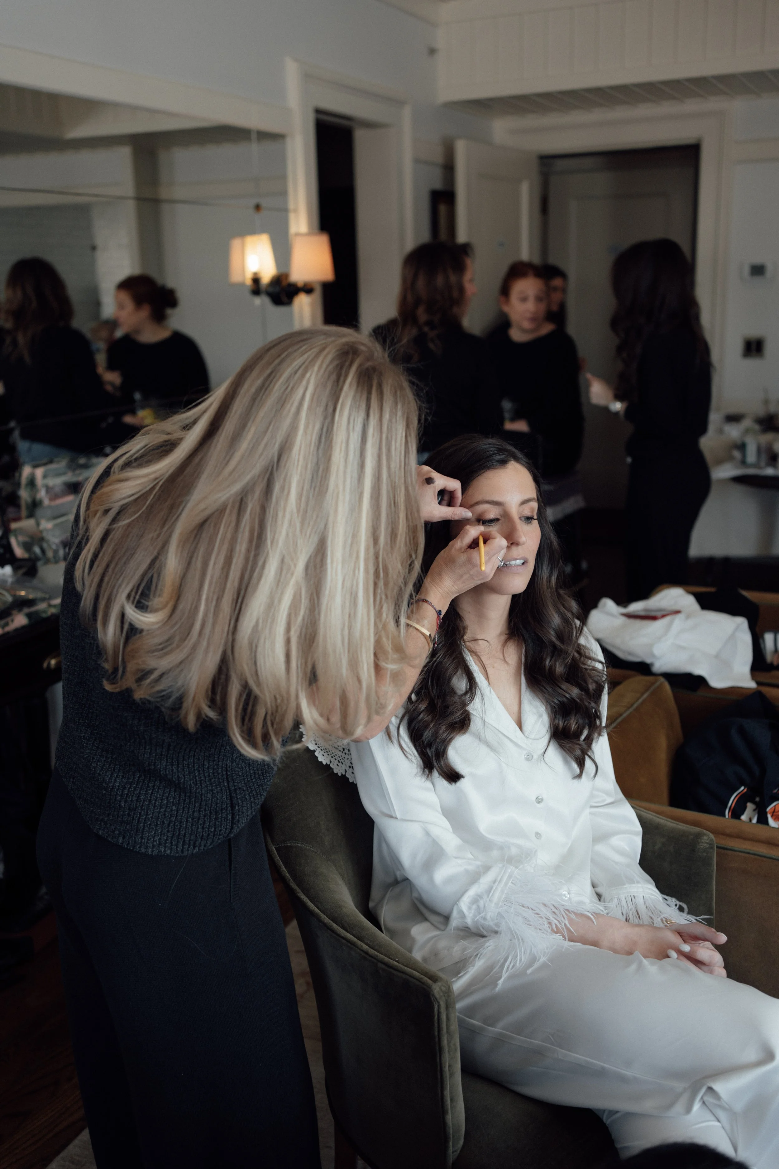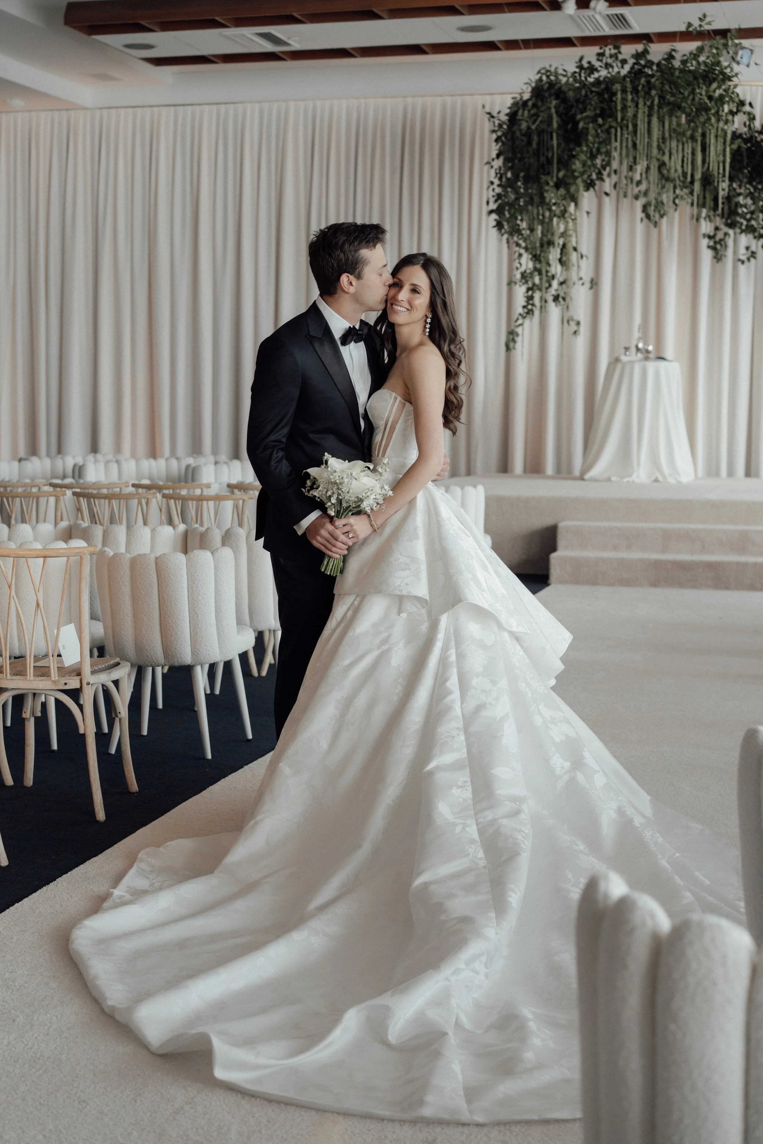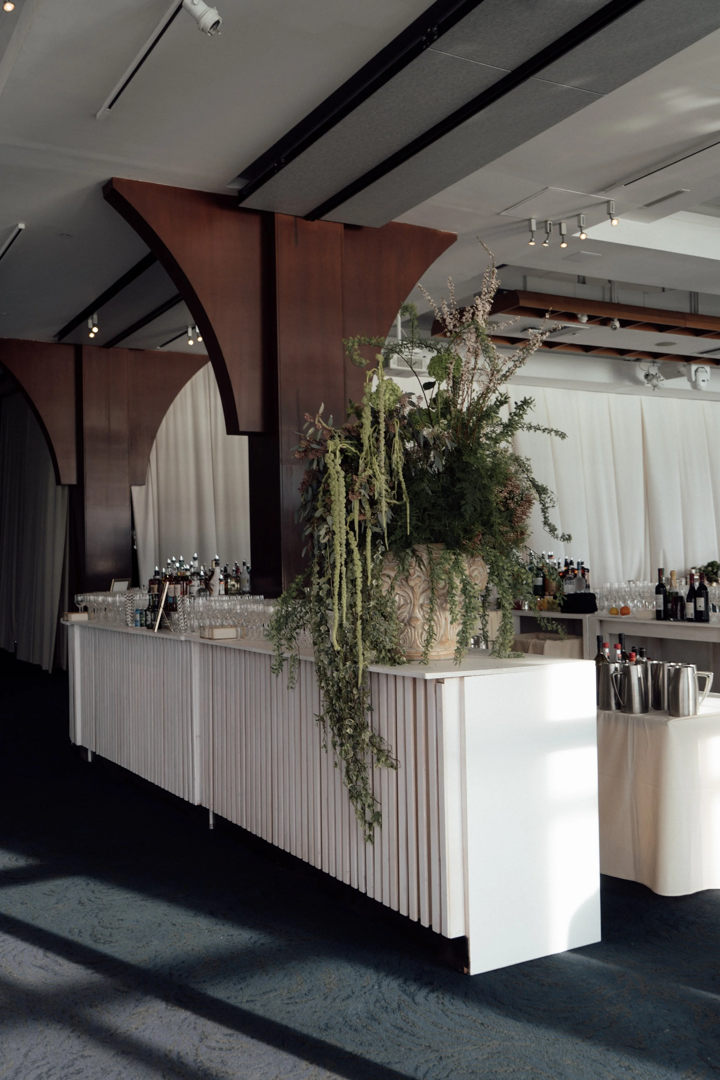 N & S began their black-tie wedding tucked inside The Bowery Hotel, where sunlight filtered through heavy drapes. As the day moved west toward the Hudson, guests gathered at Pier 60 for a modern and elegant evening with nigiri, cocktails, and the New Jersey skyline.