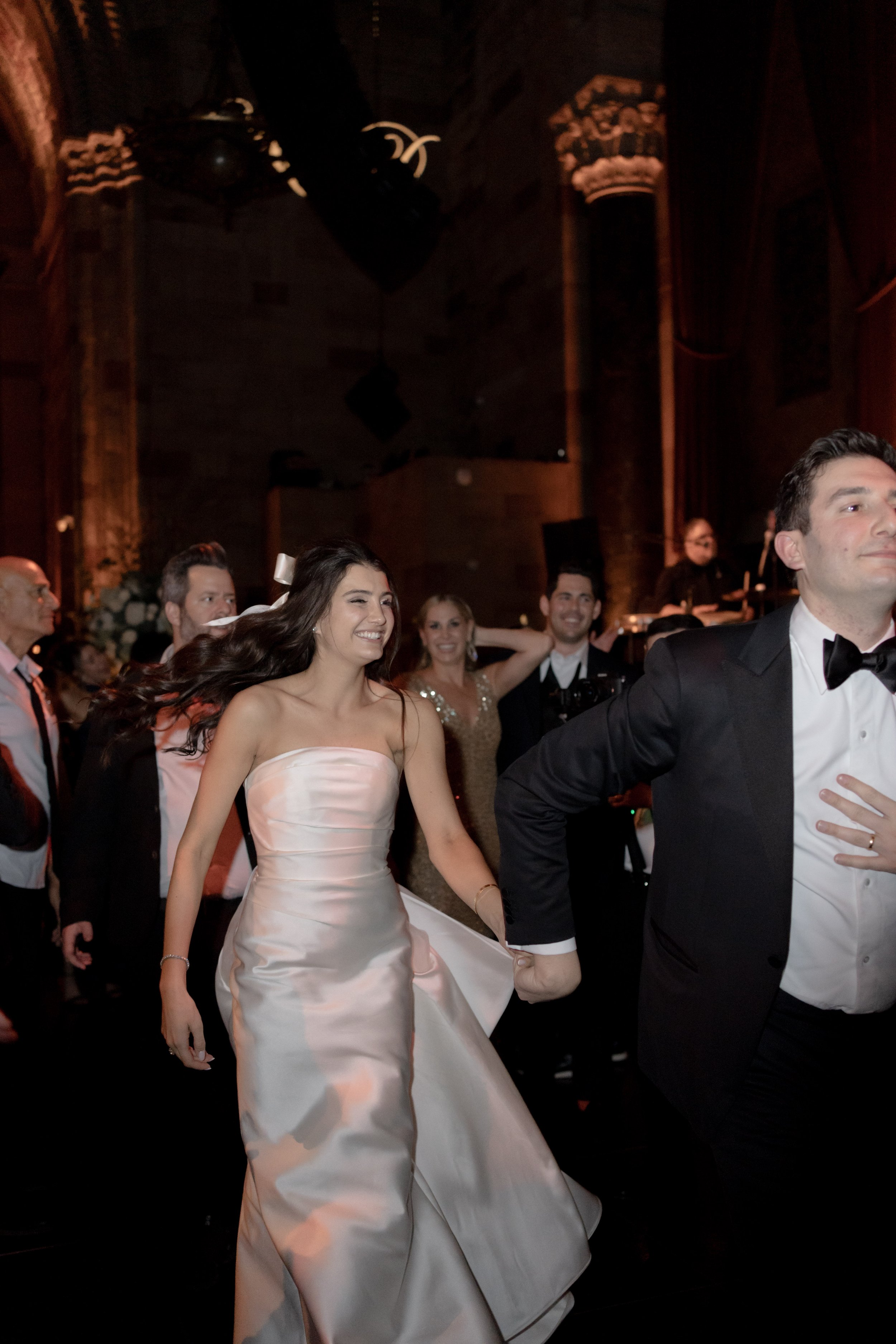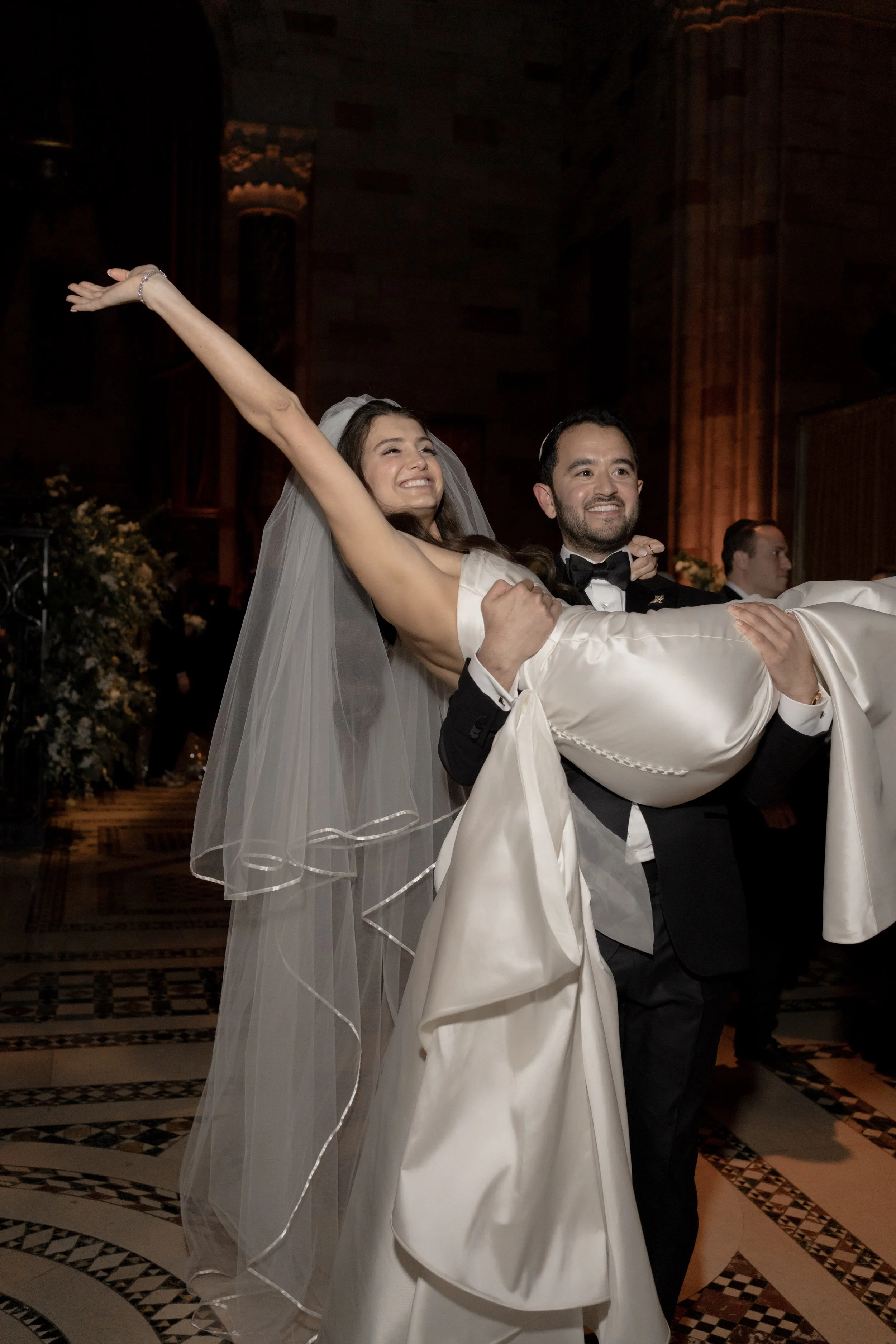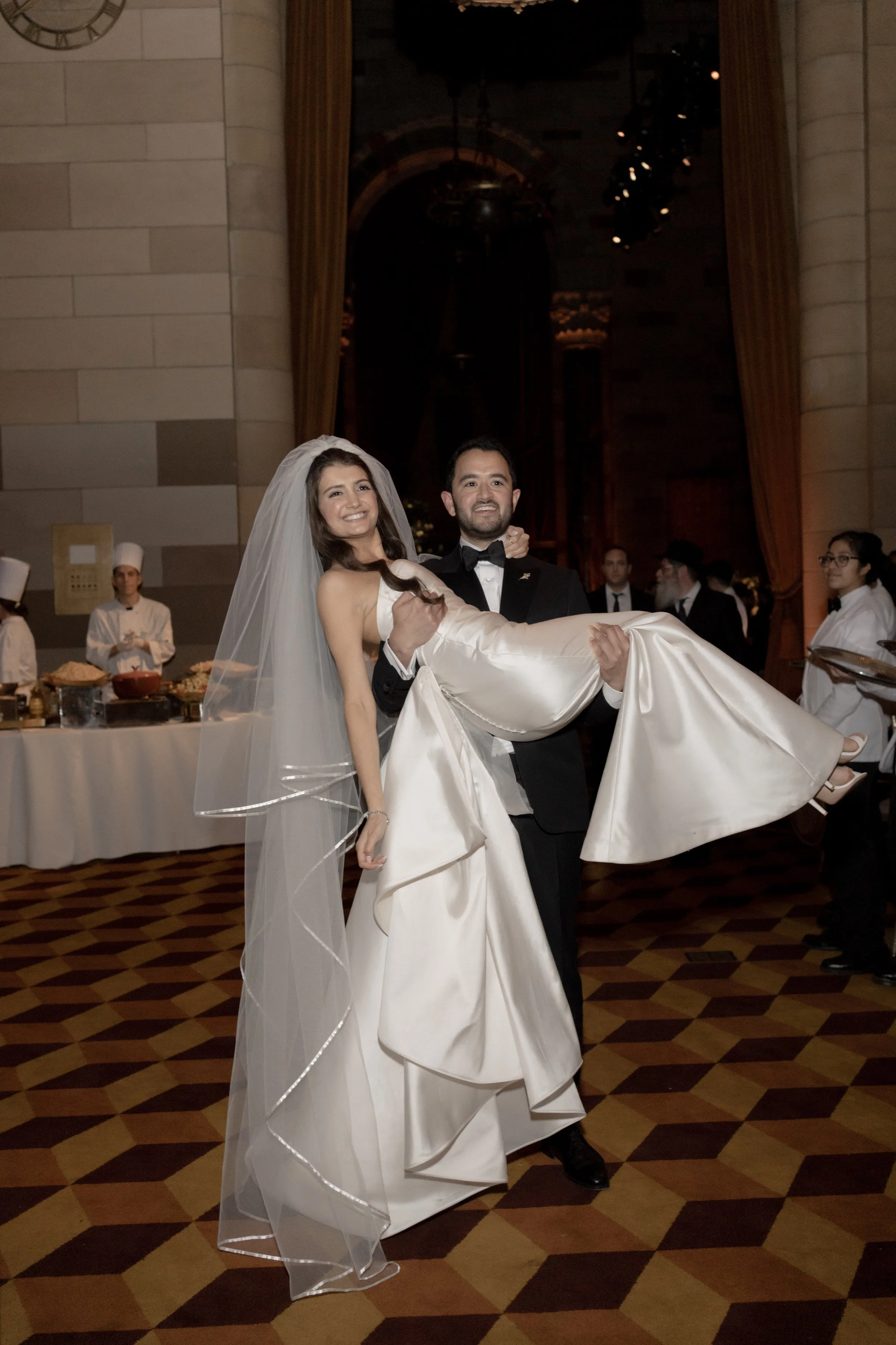 S & D’s wedding felt like a love letter to old New York. The day began at the Lotte Palace, surrounded by marble and gilt details. Midtown at Cipriani’s, the black-tie celebration unfolded in full grandeur. S made a sweeping entrance beneath towering columns, and by nightfall, the formal elegance gave way to an epic dance floor.