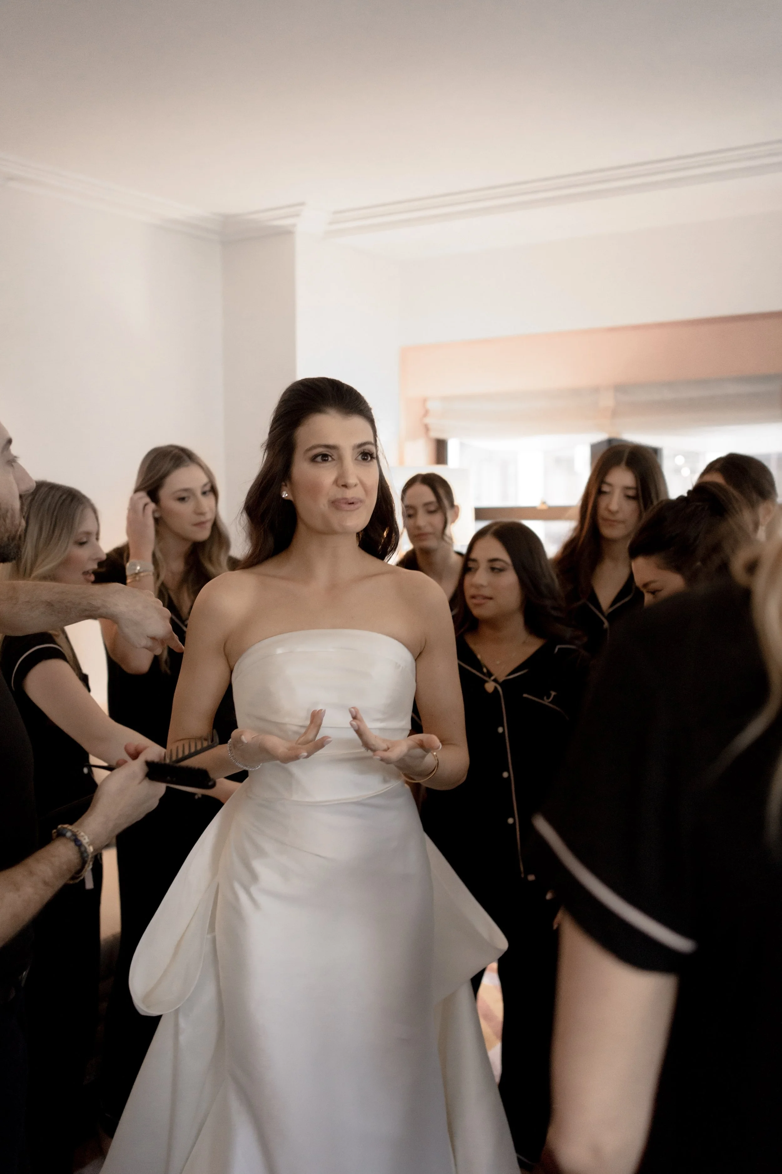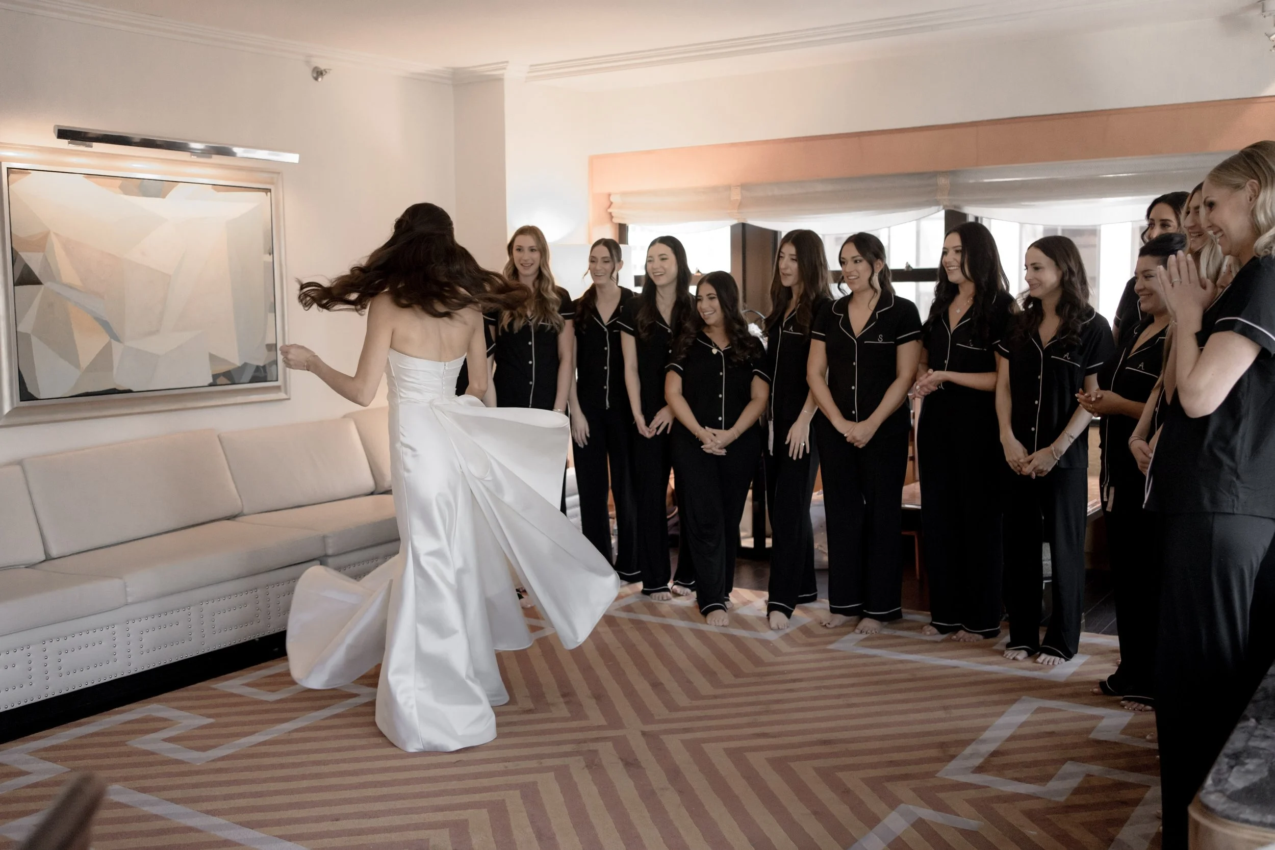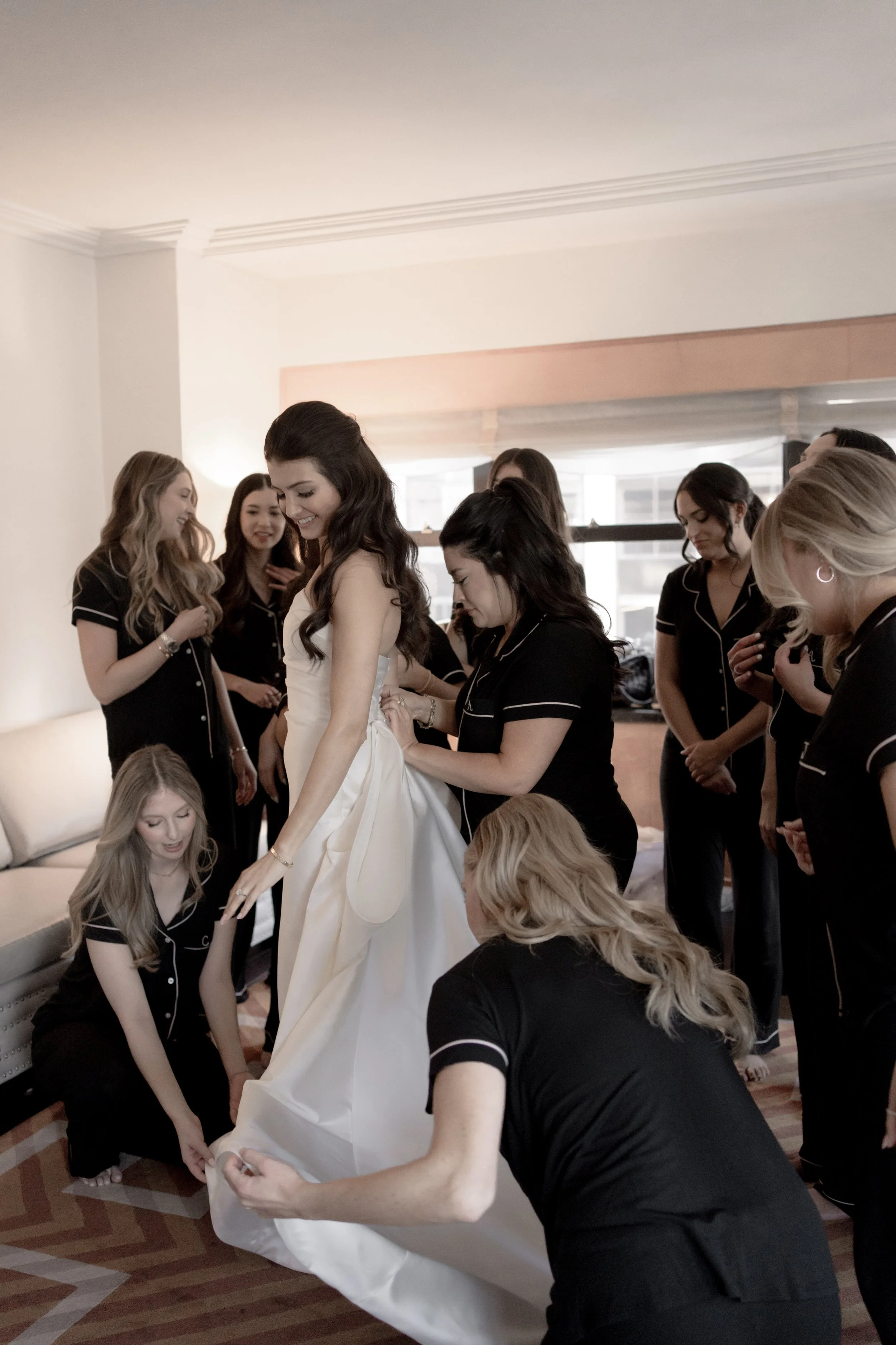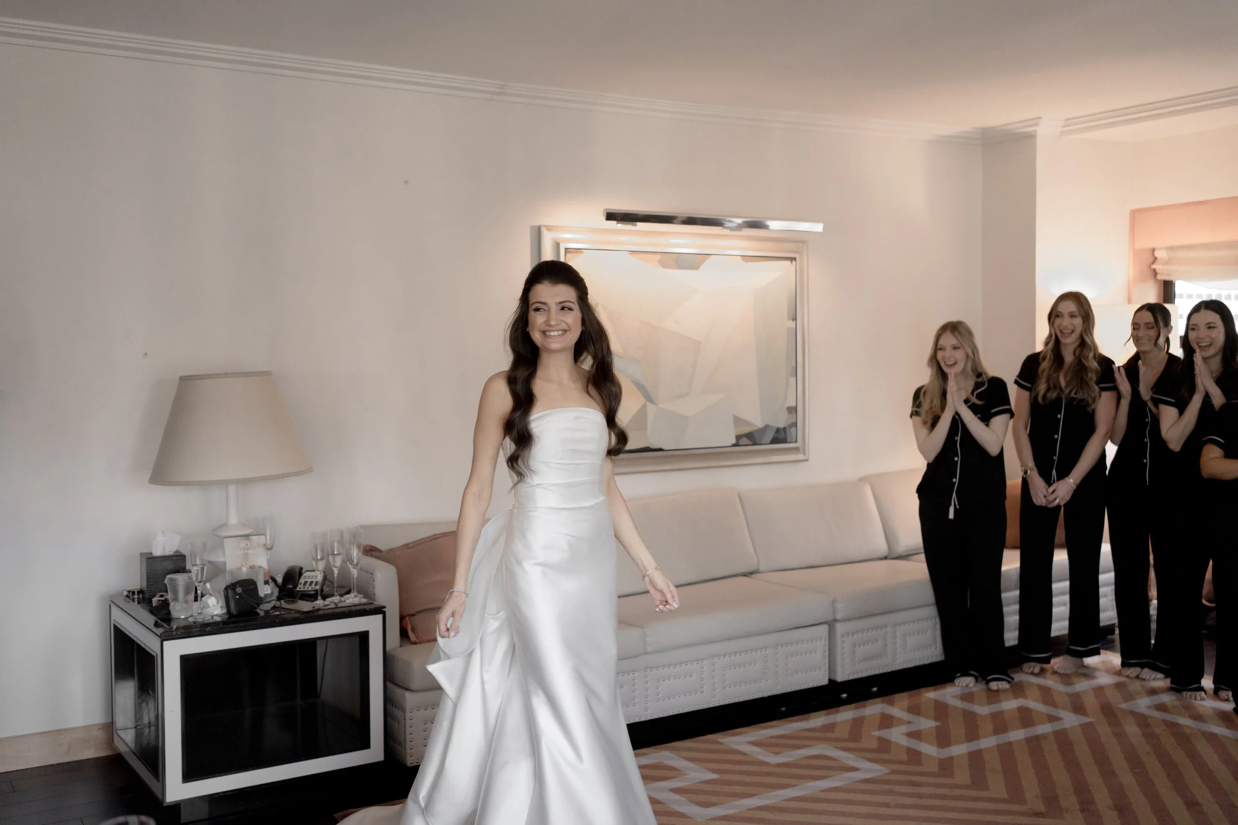 S & D’s wedding felt like a love letter to old New York. The day began at the Lotte Palace, surrounded by marble and gilt details. Midtown at Cipriani’s, the black-tie celebration unfolded in full grandeur. S made a sweeping entrance beneath towering columns, and by nightfall, the formal elegance gave way to an epic dance floor.